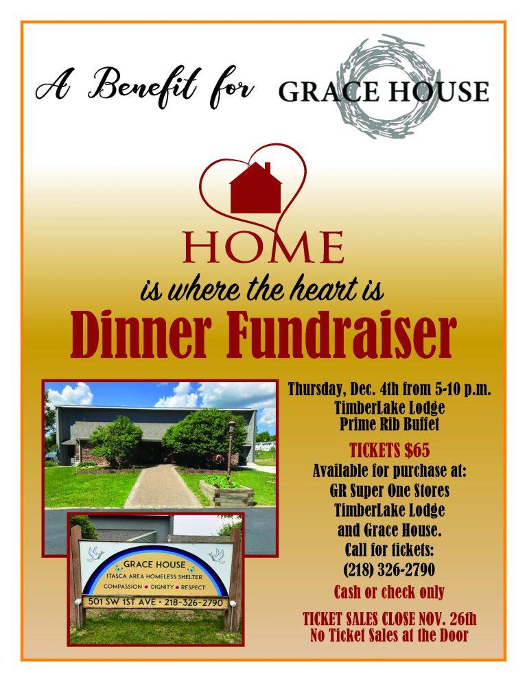 GRACE House of Itasca County 19th Annual “Home Is Where the Heart Is” Dinner Fundraiser will be held at Timberlake Lodge Thursday, December 4th from 5:00 to 10:00 p.m. The event is a festive way to help raise funds to support programs and services provided by Itasca County’s only homeless shelter.